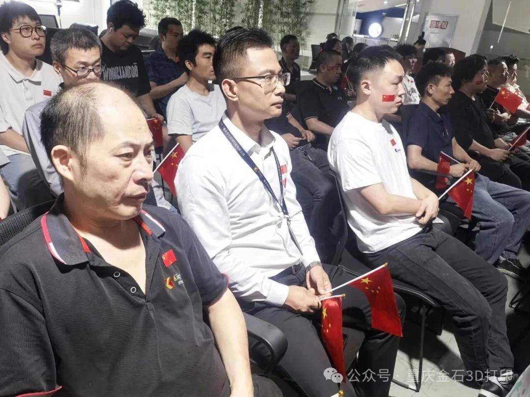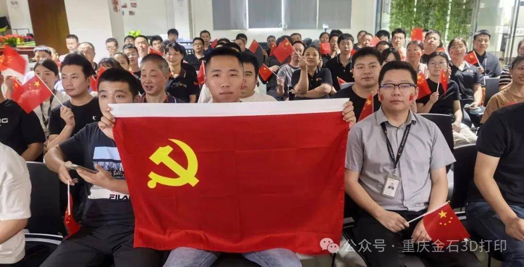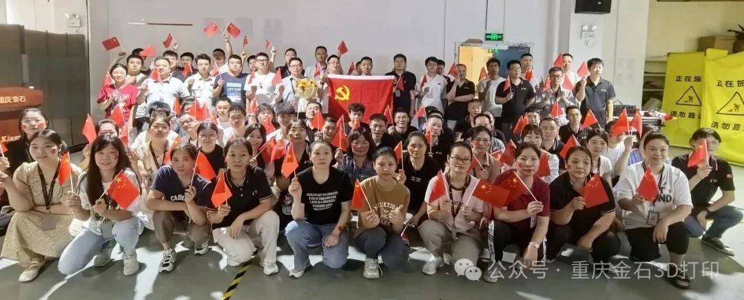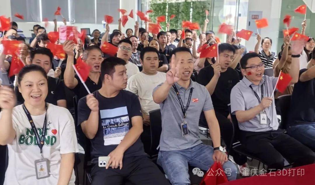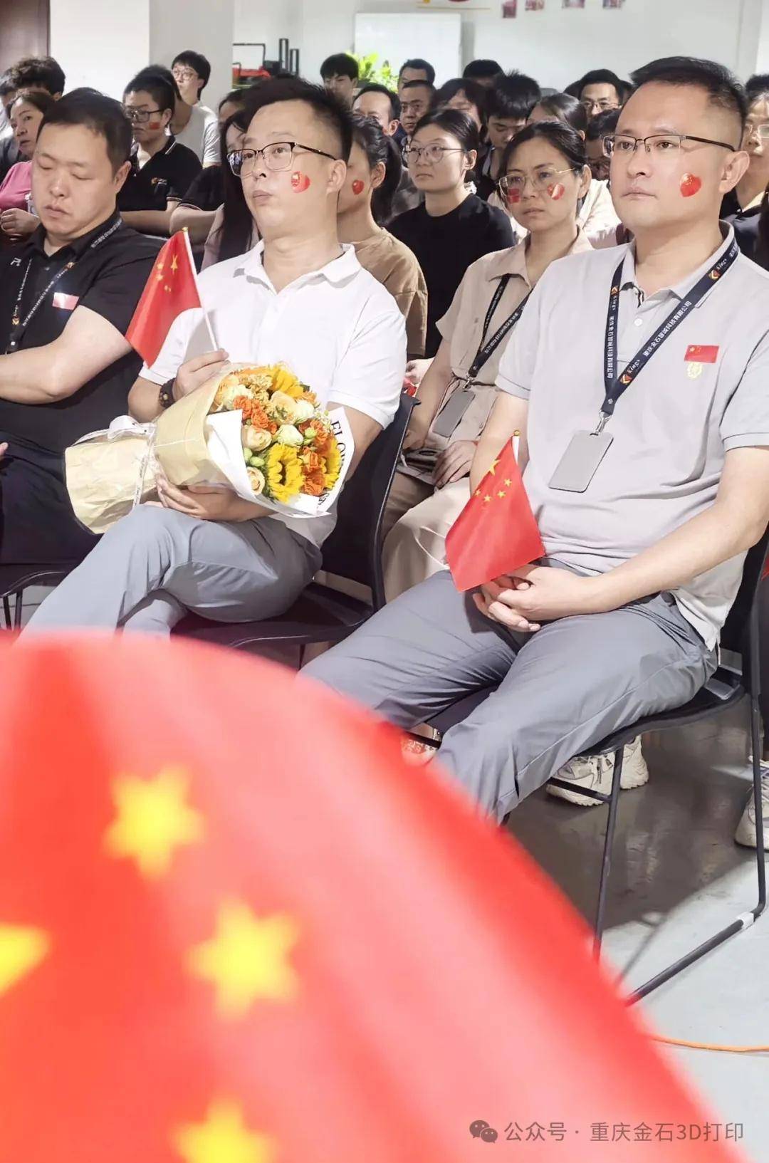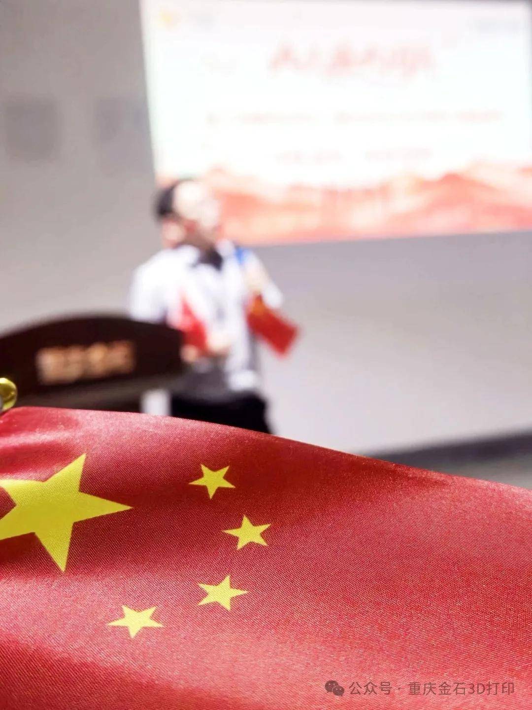 随后,全体员工在党旗下拍摄集体合影,记录下这一难忘的瞬间。屏幕上,阅兵式已经结束,但活动室里的讨论依然热烈。3D打印技术如同一条无形的纽带,将北京的阅兵场与重庆的会议室紧密相连,将国家荣耀与企业匠心紧密融合。