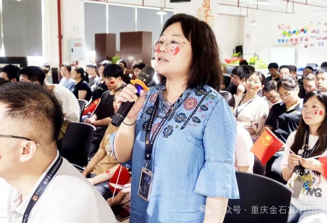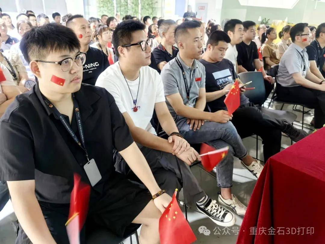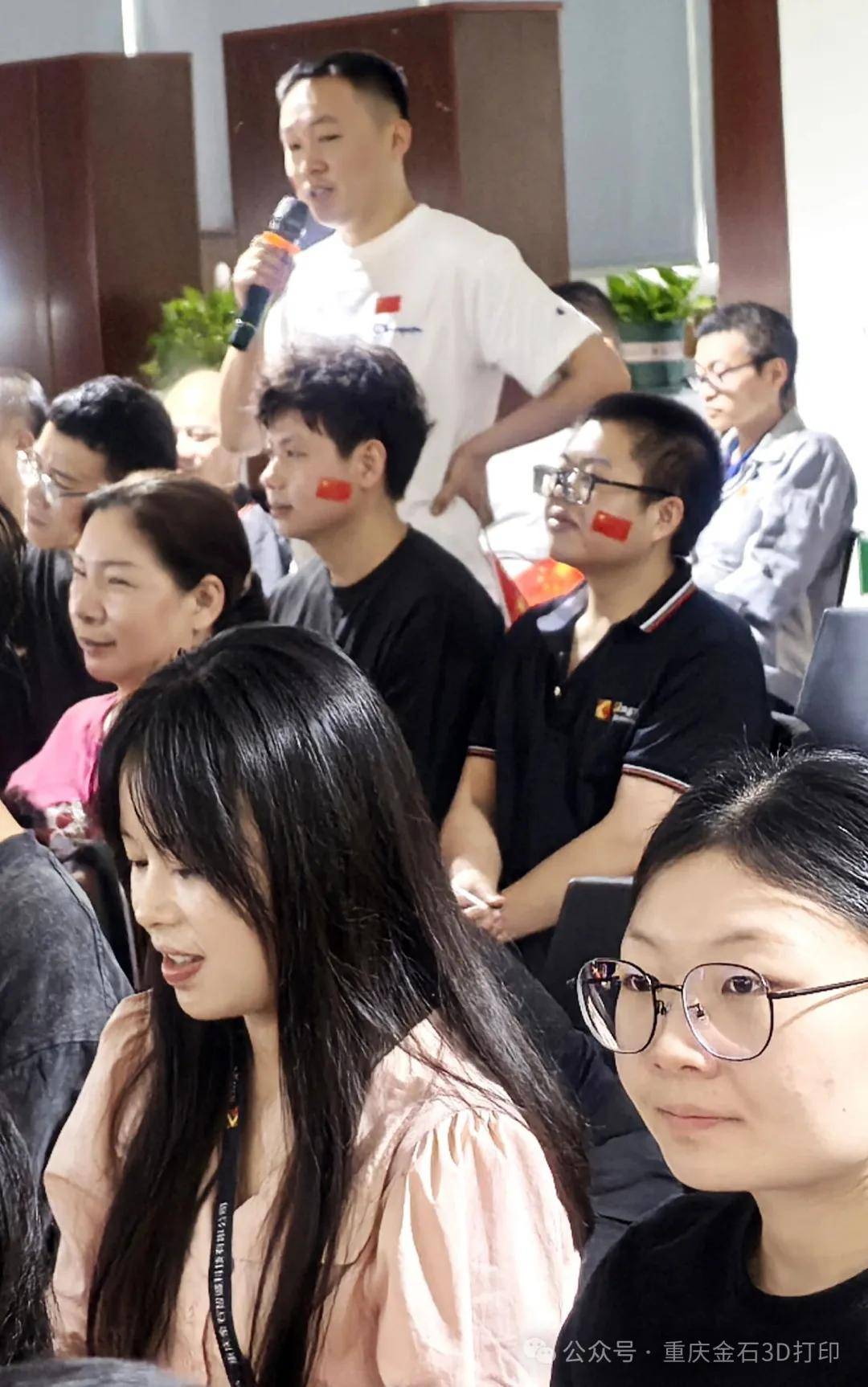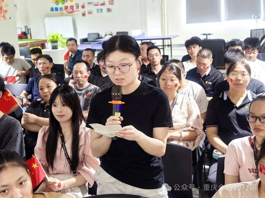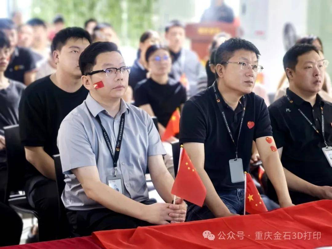 随后,全体员工在党旗下拍摄集体合影,记录下这一难忘的瞬间。屏幕上,阅兵式已经结束,但活动室里的讨论依然热烈。3D打印技术如同一条无形的纽带,将北京的阅兵场与重庆的会议室紧密相连,将国家荣耀与企业匠心紧密融合。