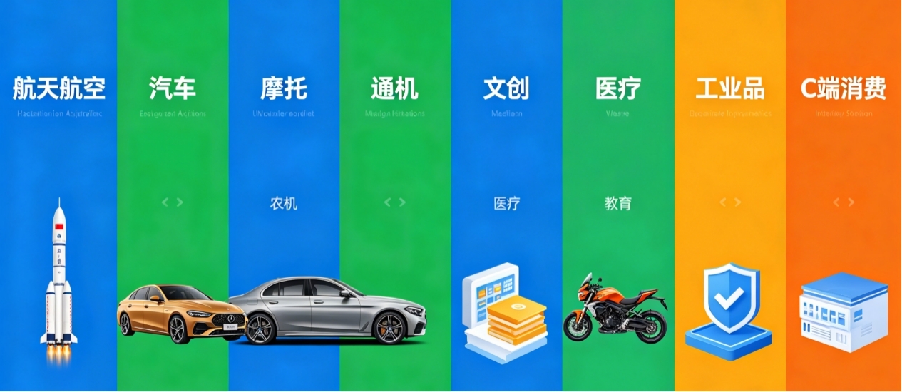 凭借“设计+AI”双核驱动能力,重庆金石的技术成果已广泛应用于十大关键行业,为B端企业降本增效,为C端用户创造惊喜体验。